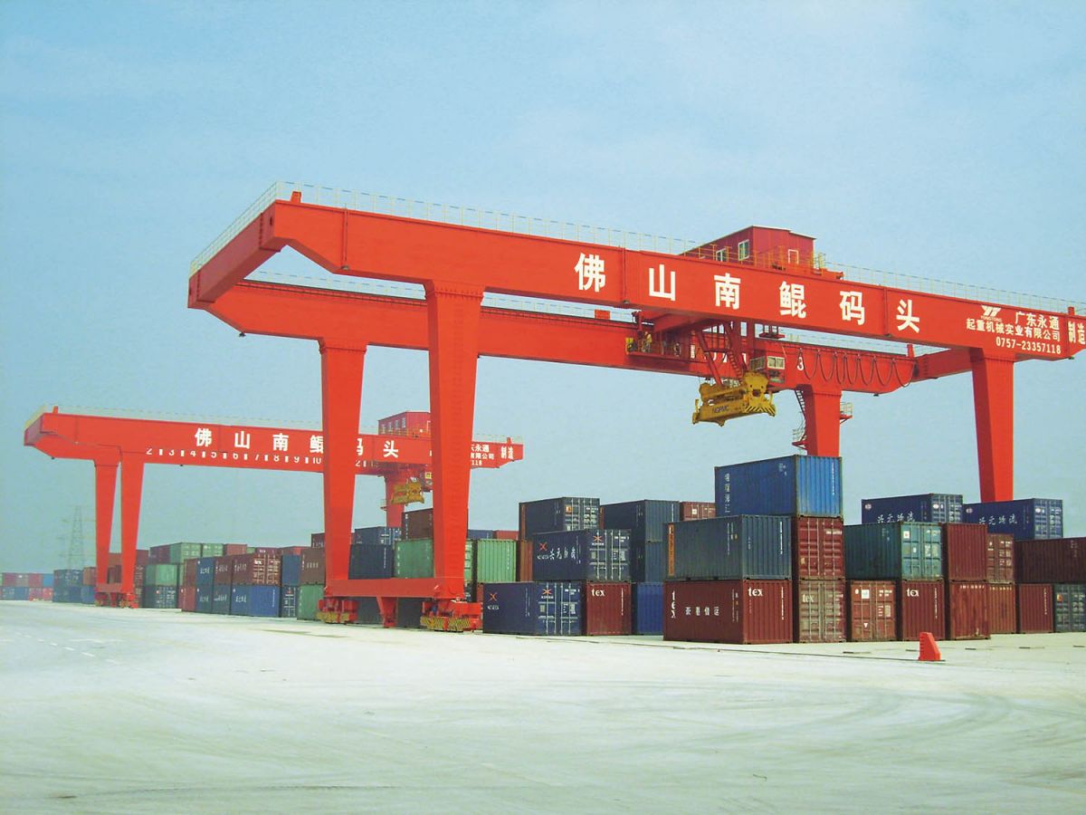 轨道式集装箱网投十大官网是一种主要用于集装箱铁路转运场和大型集装箱储运场的集装箱装卸、搬运和堆放的门式网投十大官网。它由主梁、刚性和柔性门腿、运行小车、起升机构、大车运行机构、电气系统、操作驾驶室等组成。